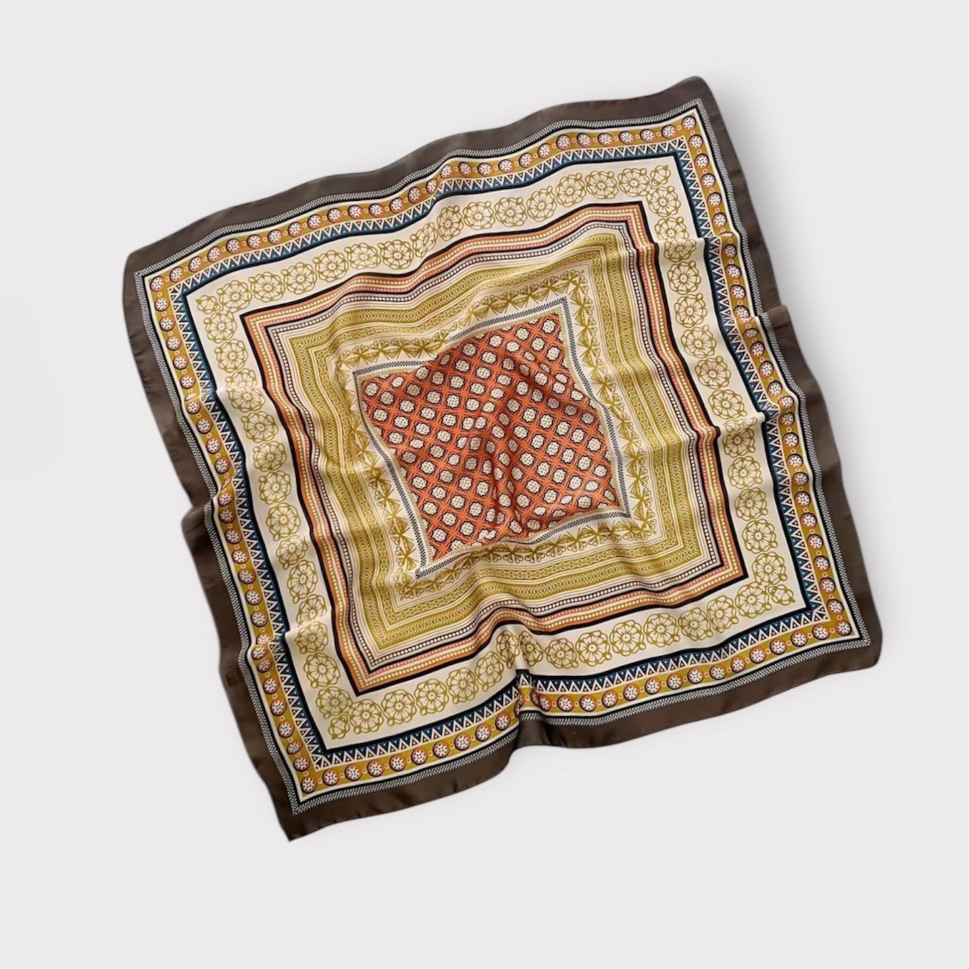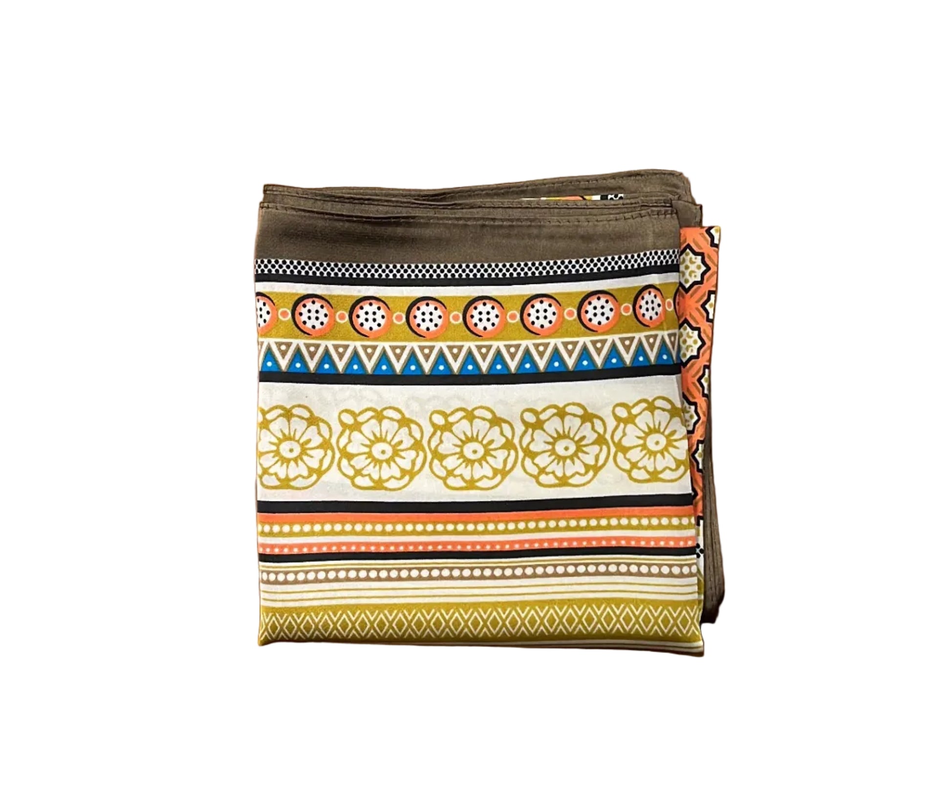 Pañuelo cuadrado de 70x70 cm con estampado en color.