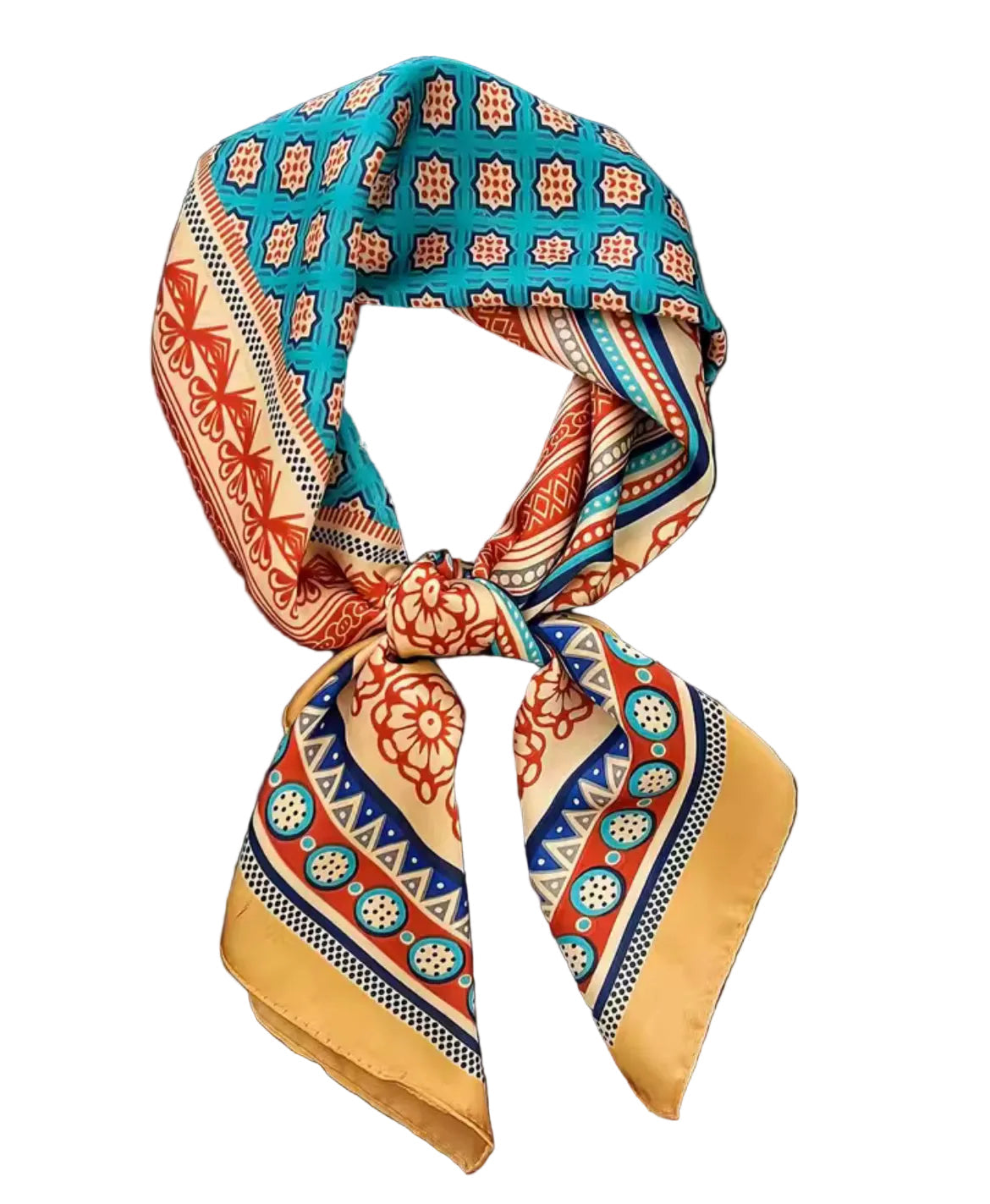 Pañuelo cuadrado de 70x70 cm con estampado en color.